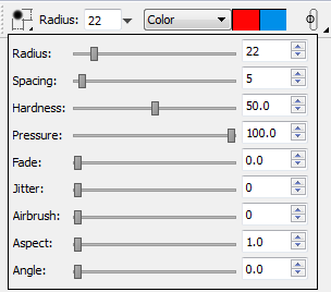The top Brush Toolbar contains all the controls needed to edit the brush.