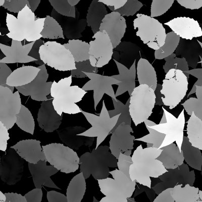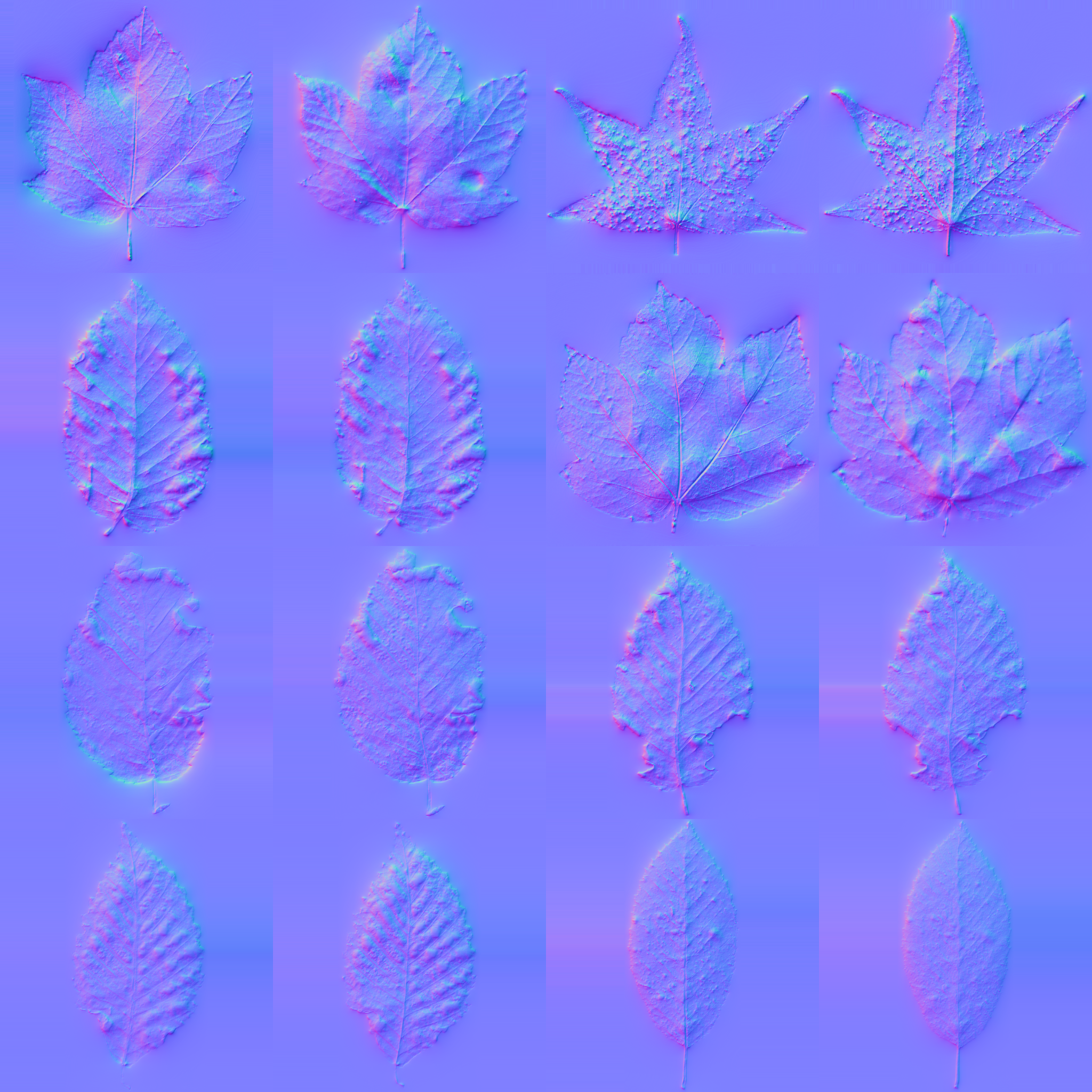 The tiles baker engine composes the tiles using their opacity and height values, with higher tiles occluding lower tiles. This composition can produce intersections, which can be desirable or not depending on the project. You can see in the previous image how some leaves are cutting through other leaves, which would not occur in the real world.